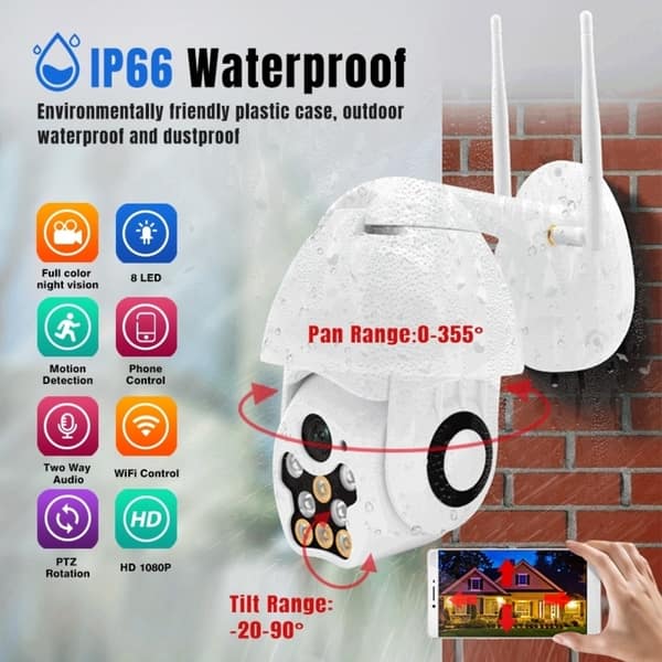 8 Led 1080p Wifi Security Camera Ip Camera Waterproof Full Color Night Vision Audio Ir Surveillance Outdoor Security Camera Overstock 30020857